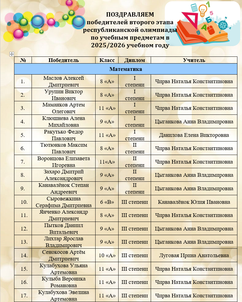 победителей и всех участников праздника, директор гимназии №1 Михаил