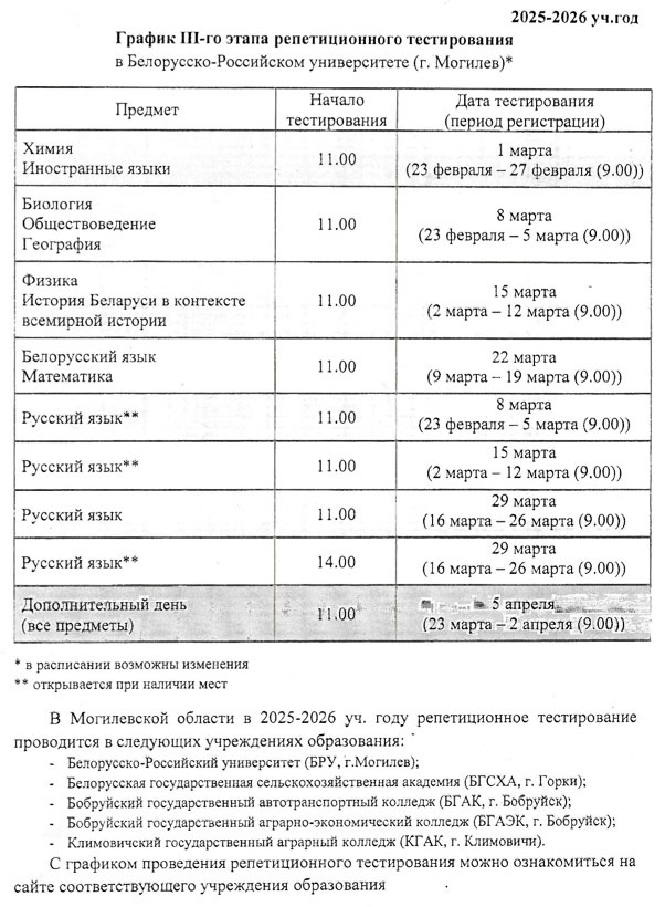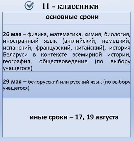 Расписание выпускных экзаменов по завершении обучения и воспитания на